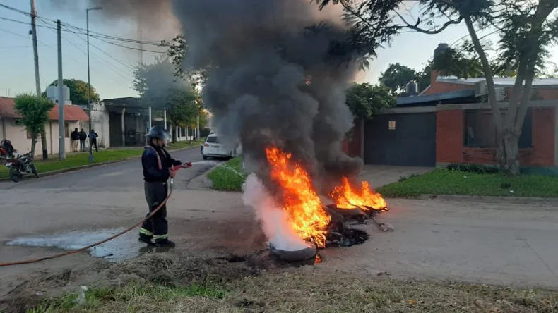 Alrededor de las 7:30 llegaron efectivos policiales para intervenir en el conflicto, y Bomberos Voluntarios para apagar las llamas. Cerca de las 8 los colectivos de la empresa pudieron iniciar su jornada.