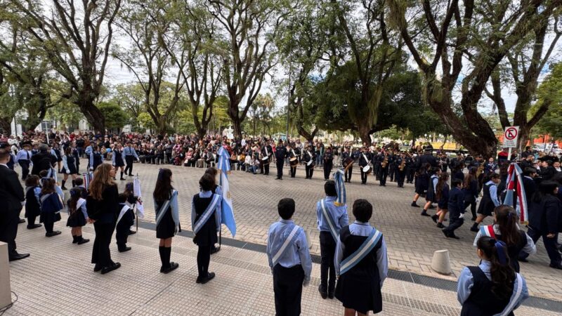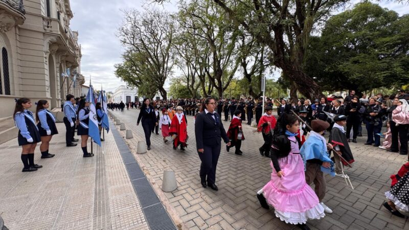 Como parte de las celebraciones por el 215° aniversario de la Revolución de Mayo, el primer grito de libertad del pueblo argentino, este viernes, delegaciones de jardines de infantes y colegios secundarios realizaron un desfile colorido y musical frente a la legislatura correntina.