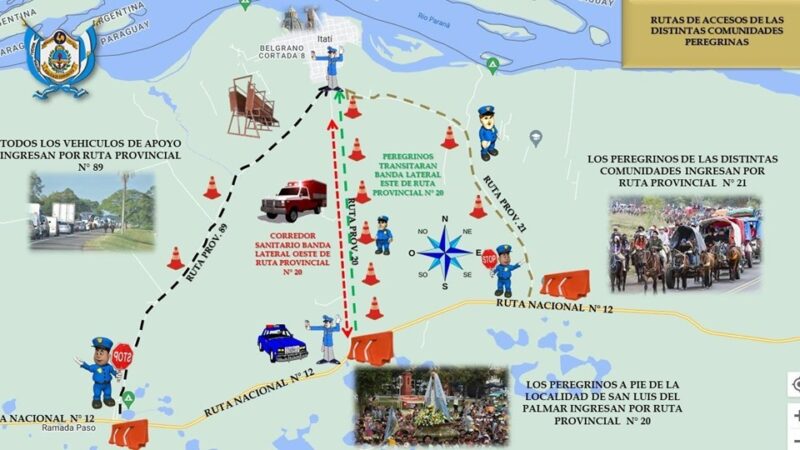 Ruta Nacional N°12 y Ruta Nacional N°118: Se informara a todos aquellos vehículos de gran porte (camiones, colectivos de larga distancia, etc.), que circulen desde el interior hacia capital y tenga por destino la ciudad de Corrientes, o más allá, es decir, que tenga que tomar la misma dirección que la peregrinación, los desvíen por la Ruta Nacional 118, hasta retomar la Ruta Nacional N°12.