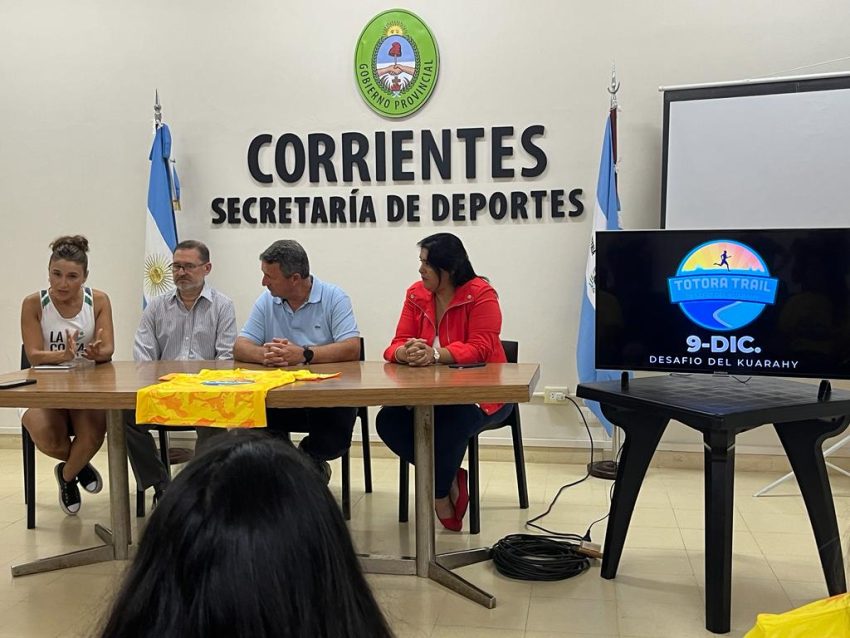 Se realizó en la mañana de este jueves, el lanzamiento de la carrera de aventura Totora Trail, Desafío del Kuarahy, que se desarrollará este sábado 9, en San Cosme. La Secretaría de Deportes de la provincia conducida por Jorge Terrile, fue escenario de la presentación.