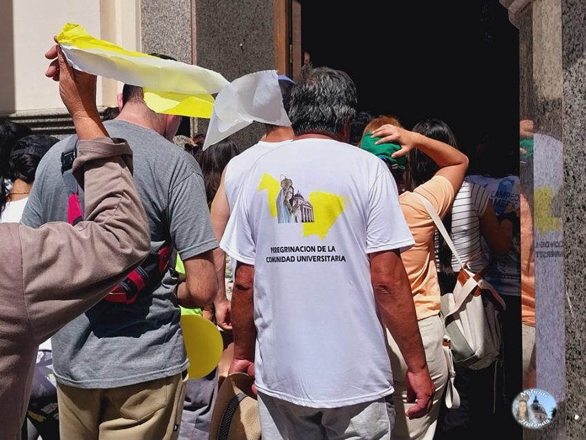 Alumnos, familiares, personal docente y no docente de la Universidad Nacional del Nordeste, la Universidad Nacional del Chaco Austral, acompañados por la Pastoral Universitaria de la Diócesis de Sáenz Peña habían emprendido ayer la marcha hacia el Pueblo de la Virgen.