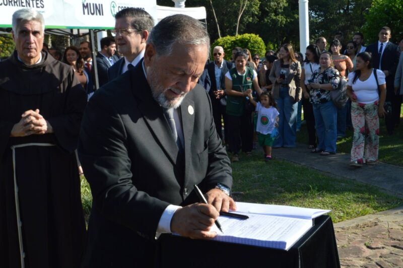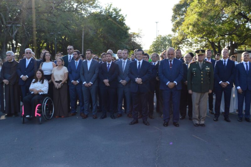 En la mañana de hoy se realizó el acto formal por el 438° aniversario de la fundación de la ciudad de Corrientes, que contó con la participación del intendente de la ciudad Claudio Polich, el vicegobernador Pedro Braillard Poccard, el presidente del Concejo Deliberante, Marcos Amarilla y alumnos de distintos establecimientos educativos.