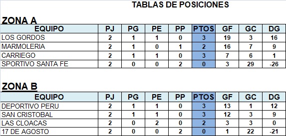 Mientras que en la Zona B, conformada en su totalidad por elencos correntinos, lideran el Deportivo Perú y San Cristóbal, con 3 unidades, respectivamente.