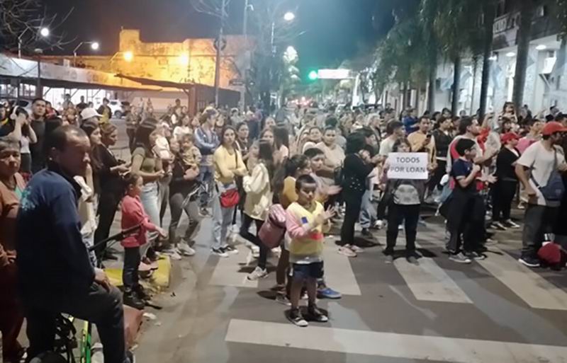 GOYA. Un nutrido grupo de vecinos de todas las edades se convocaron con carteles frente a la iglesia Catedral en la noche del sábado, desde donde recorrieron las calles céntricas en una muestra de apoyo y solidaridad con la familia de Loan Danilo Peña, desaparecido en la siesta del jueves 13 de junio en la localidad de 9 de Julio, departamento San Roque.