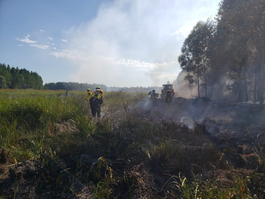 Desde el lugar, informaron que los incendios en dicho municipio “están contenidos, pero todavía no pudieron ser controlados”. Asimismo, estiman que hasta el momento la superficie afectada es de 300 hectáreas entre plantación y esteros.