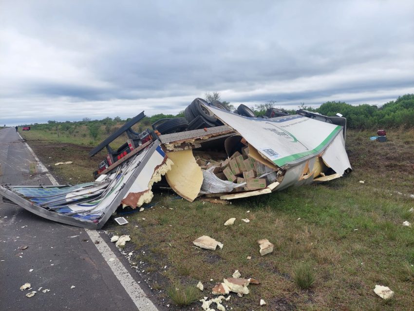 Un camión de una empresa de transporte de cargas despistó y terminó volcando sobre la banquina, por circunstancias que se desconocen aún. Afortunadamente solo se produjeron daños materiales, ya que su conductor salió ileso.
