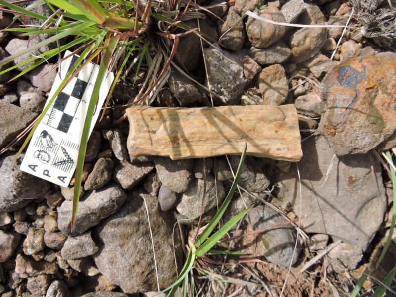 El material fue colectado a mediados de 2023 por el equipo del Cecoal, en el marco de un proyecto sobre la «Evolución Paleoambiental» liderado por Lionel Fernández Pacella. El técnico Pedro Cuaranta fue quien inicialmente advirtió que el elemento, encontrado entre los clastos a la orilla de un pequeño arroyo en la Formación Solari (ubicada entre Mercedes y Curuzú Cuatiá), era diferente al material circundante.