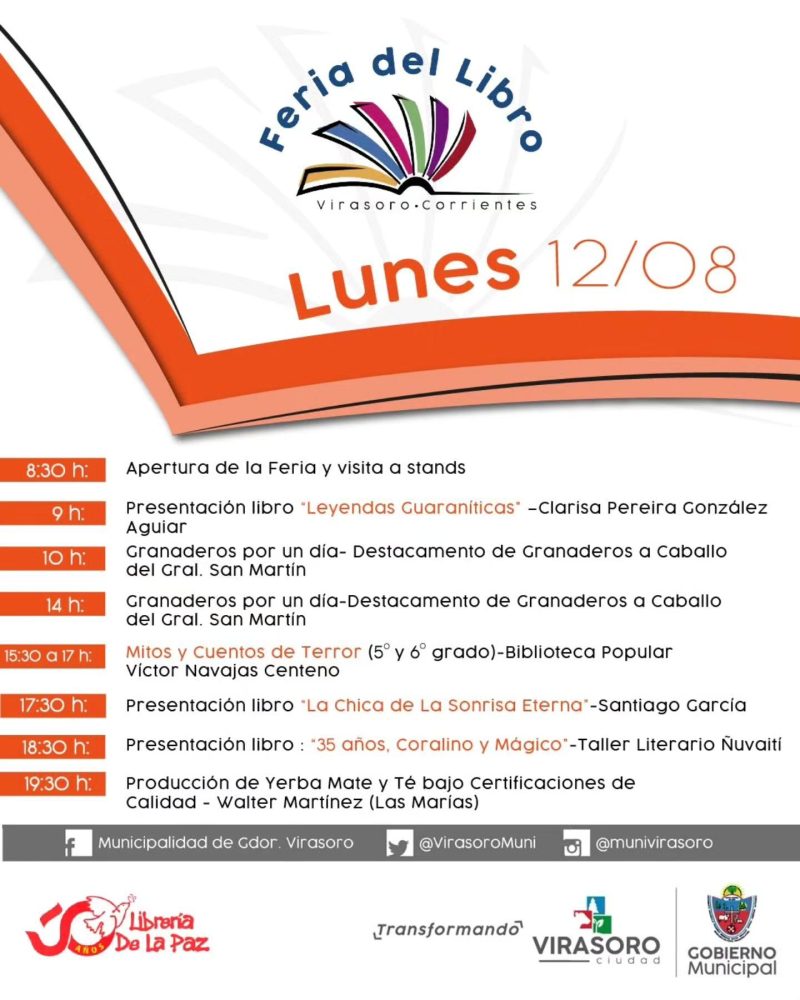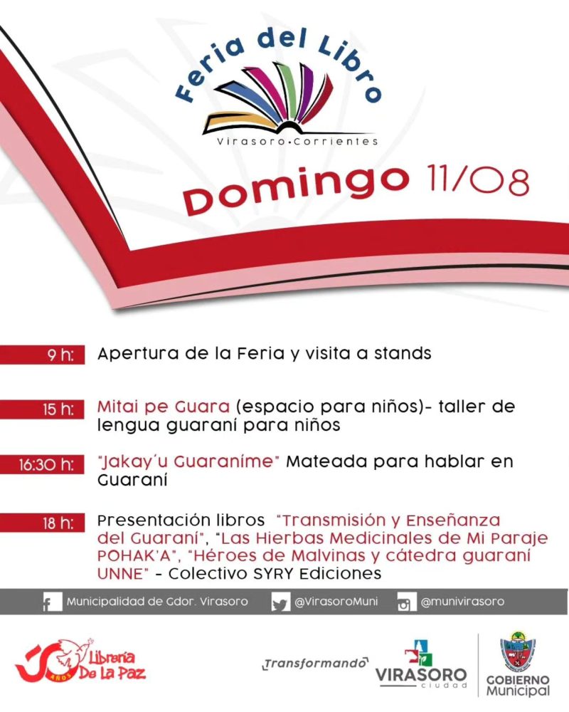 El cierre de la jornada fue a puro chamamé con Fulgor de Alborada, conjunto integrado por jóvenes virasoreños. Además del gran volumen de libros que se pueden ver, ojear y adquirir en el lugar están programadas numerosas e interesantes actividades durante toda la semana para agendarlas, entre charlas, presentaciones de libros, talleres, espectáculos de títeres para niños, y música. A continuación les dejamos el programa de actividades de este domingo y lunes.