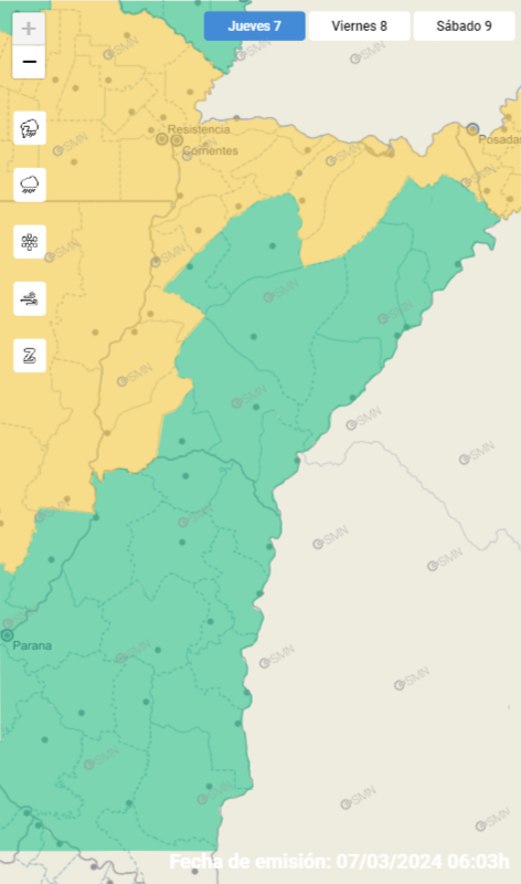 De acuerdo al SMN, el Norte y Oeste de la provincia se encuentra bajo alerta amarilla por tormentas, algunas localmente fuertes. Se cuerdo al informe, “las mismas podrán estar acompañadas por ráfagas intensas, importante actividad eléctrica, ocasional caída de granizo y principalmente abundante caída de agua en cortos períodos”.
