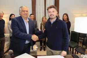 El presidente de la cámara de Diputados Pedro Cassani junto a los diputados Any Pereyra, Cesar Lezcano, Egui Benítez, José Romero Brisco, Lucía Centurión, Ana Améndola y Horacio Pozo y el rector de la Universidad de la ciudad de Buenos Aires –Unicaba- Sergio Siciliano rubricaron un convenio de colaboración entre las instituciones que representan, en el marco del objetivo de servicio de extensión educativa a la comunidad, dentro de sus respectivas jurisdicciones.