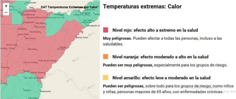 Cierra una semana de calor sofocante en todo Corrientes, con varias jornadas en las que la temperatura y la sensación térmica superaron los 40 grados. Ayer, el Servicio Meteorológico Nacional “tiñó de rojo” el mapa de la provincia y este sábado, la alerta roja abarca gran parte del territorio.