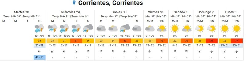 Por otra parte, según el pronostico extendido, las condiciones meteorológicas mejorarían para el fin de semana.