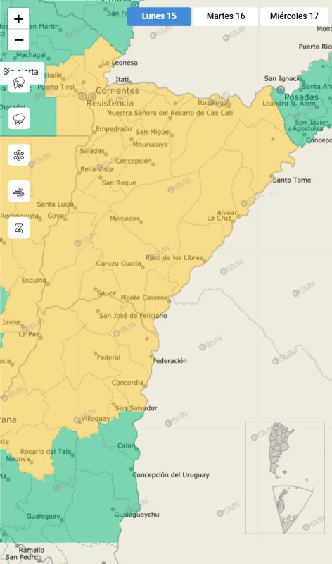 La jornada arrancó inestable en la provincia de Corrientes. El Servicio Meteorológico Nacional (SMN) emitió una alerta de nivel amarillo por la llegada de tormentas fuertes, que afectarán tanto a la capital como a todas las localidades del interior a lo largo de este lunes.