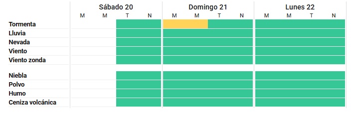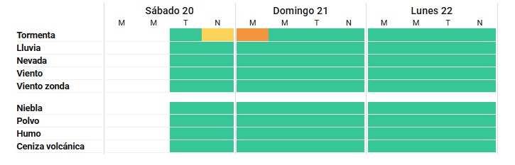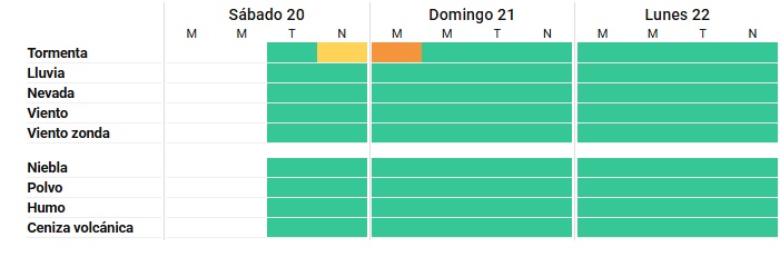 El nivel amarillo significa sobre “posibles fenómenos meteorológicos con capacidad de daño y riesgo de interrupción momentánea de actividades cotidianas”.