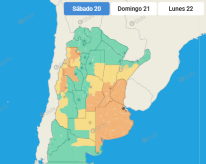 Para mañana, el SMN anticipó que, durante la madrugada, el norte de la provincia entraría en alerta amarilla, mientras que el resto del territorio en alerta naranja por tormentas fuertes.