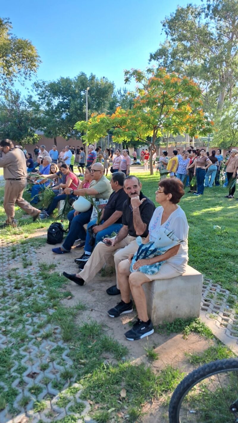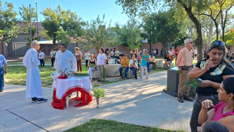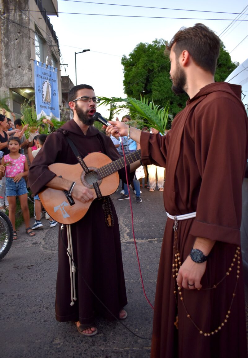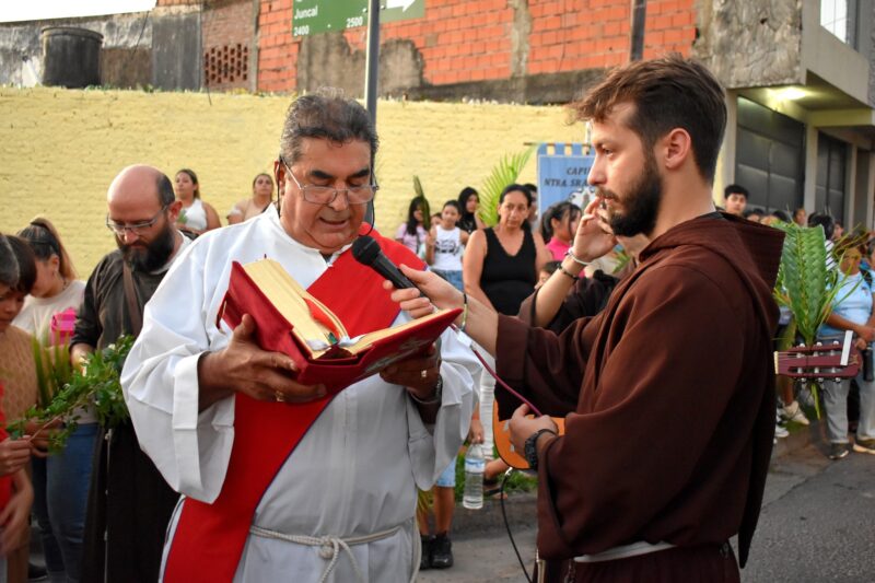 Hoy, la mañana arrancó temprano y con el sol acariciando los ramos en alto. A las 9, la plaza Primera Junta del barrio Yapeyú se llenó de vecinos. Los frailes de Nuestra Señora de Pompeya encabezaron la bendición, y desde allí partió una marea de gente en procesión hacia la sede parroquial. Para quienes no pudieron estar temprano, la parroquia mantiene las puertas abiertas con misas programadas para las 19 y 20.30.
