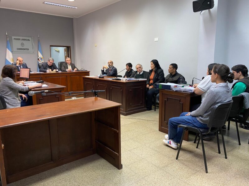 El Tribunal está compuesto por el doctor Juan José Cochia como presidente y los vocales doctores; Ariel Héctor Gustavo Azcona y Román Facundo Esquivel. La secretaria es la doctora Alicia Beatriz Porfirio. También siguió la audiencia por conexión remota, vía Webex, la doctora Carolina Macarrein a cargo del Juzgado de Familia, Niñez y Adolescencia N° 4.