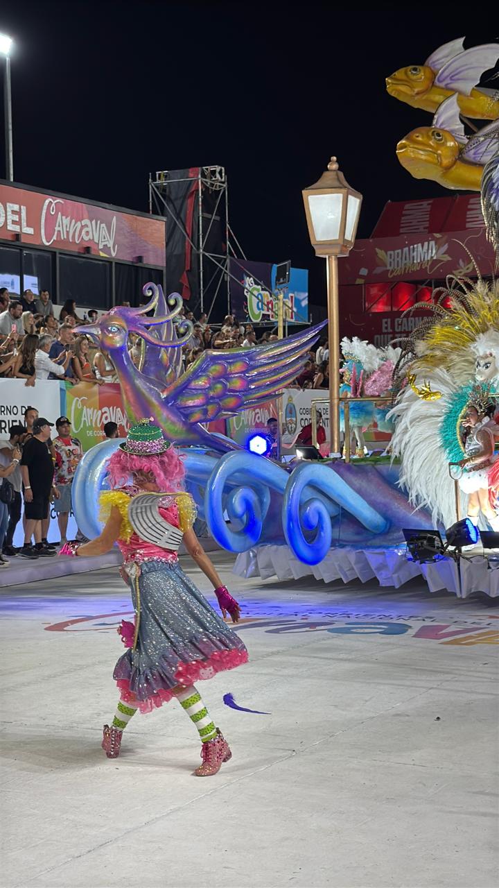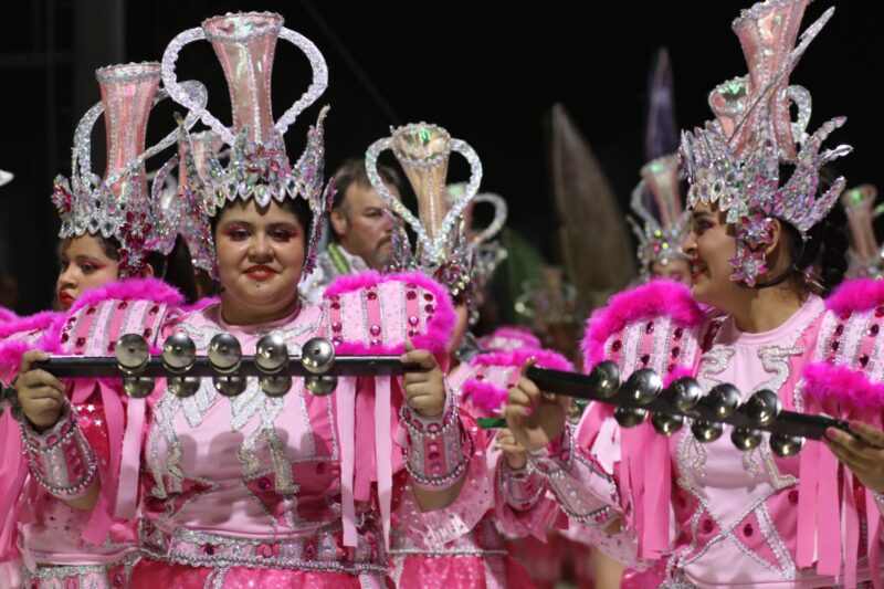 El desfile arrancó a las 22 con la última campeona de las agrupaciones musicales, Imperio Bahiano, que con su «Máquina del Tiempo» puso a vibrar al predio desde el primer compás. Inmediatamente después, el ritmo continuó con Samba Show, que transformó la avenida en una verdadera «Noche Disco», llenando la calzada de color y nostalgia festiva.
