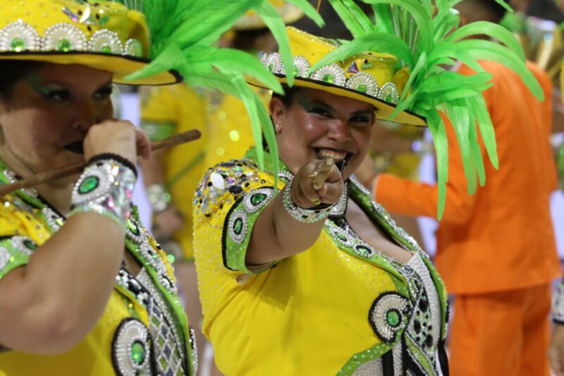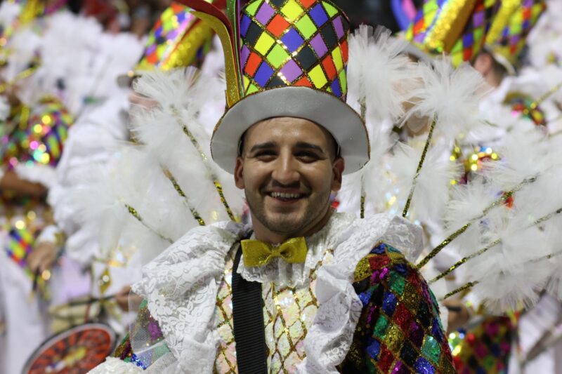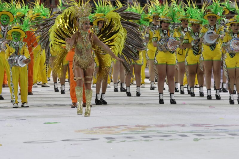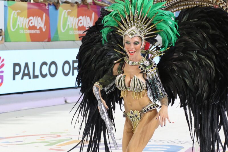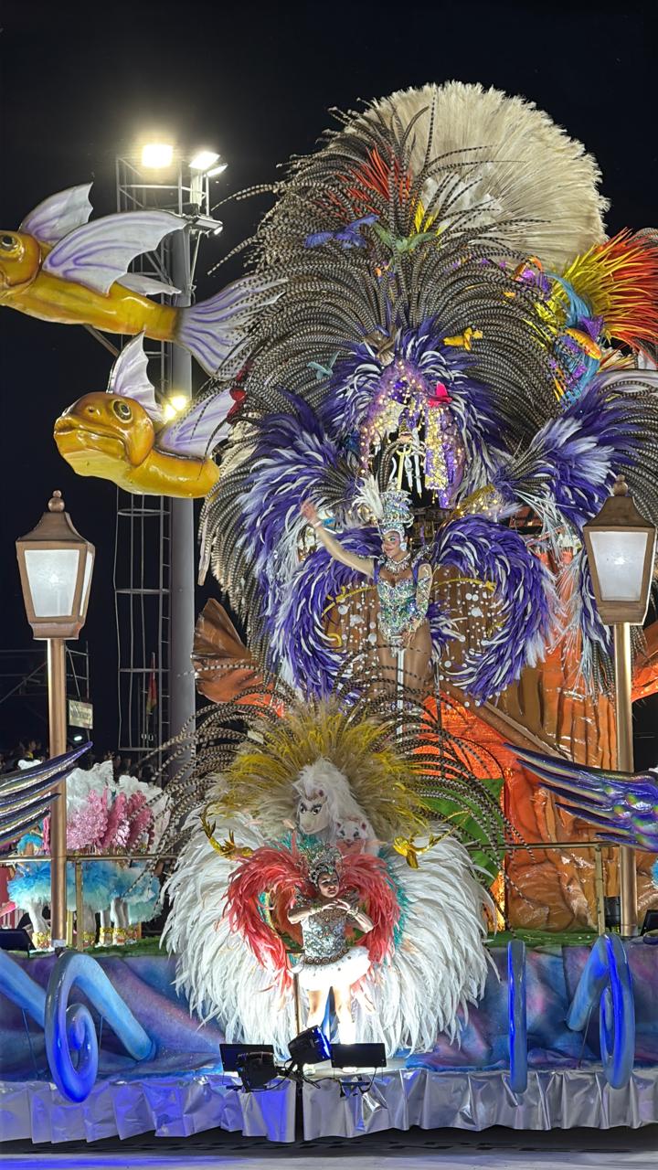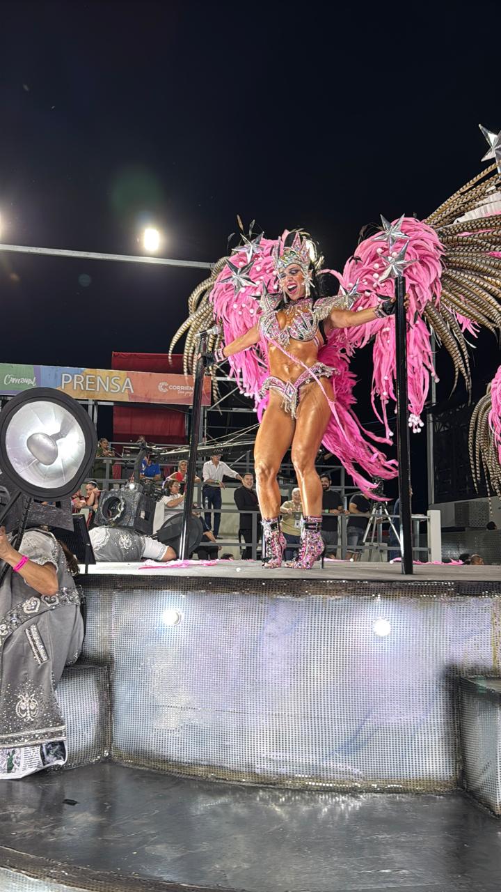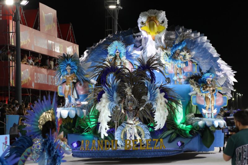 Más tarde, Arandú Beleza copó la calzada con «Agua del Cielo». En su 20° aniversario, la comparsa cautivó con su mística guaranítica y una elegancia que reafirmó su sello distintivo. Antes del gran final, la «Multicampeona» Samba Total hizo que «comience el show», desplegando todo el glamour de su estética revisteril y su fuerza rítmica inconfundible.