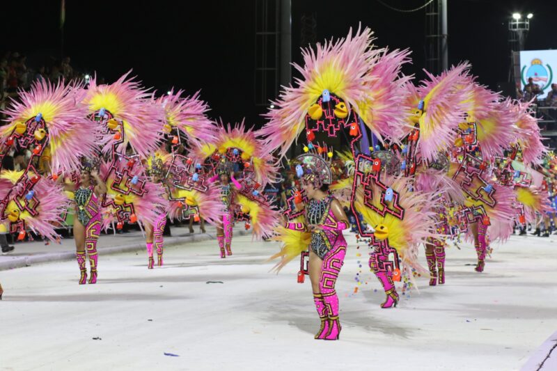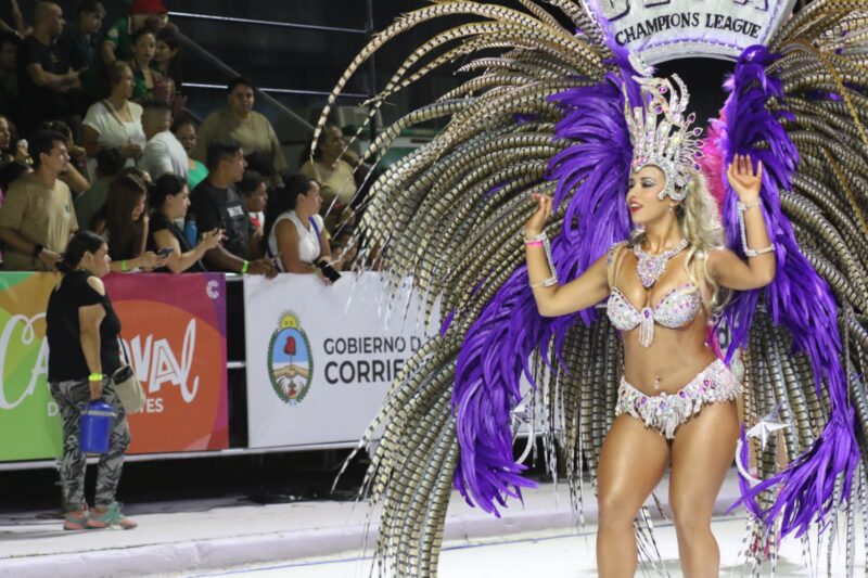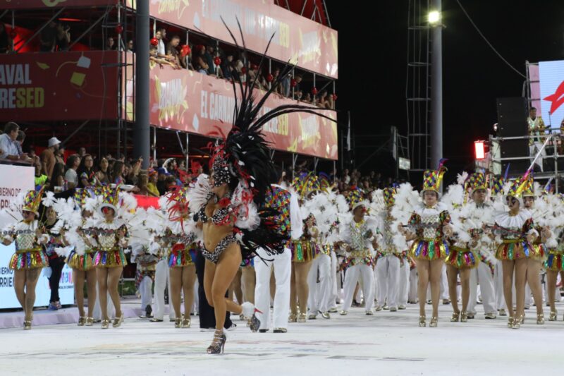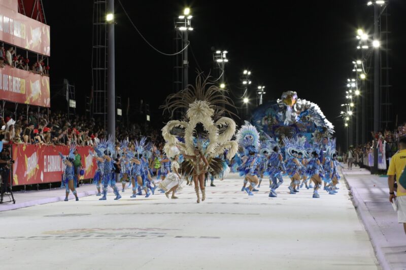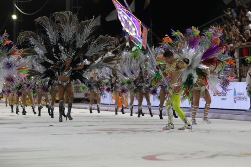 Pasadas las 23, la adrenalina subió a su punto máximo con el ingreso de la campeona defensora de las comparsas, Ará Berá. Con «El Rayo de la Locura», desplegó una puesta en escena imponente que cautivó a las tribunas, secundada por el ritmo arrollador de su Universidad del Sonido. Al finalizar su paso, Sambanda tomó la posta con su temática gamer, activando el «Modo Carnaval ON» con una energía tecnológica y contagiosa.