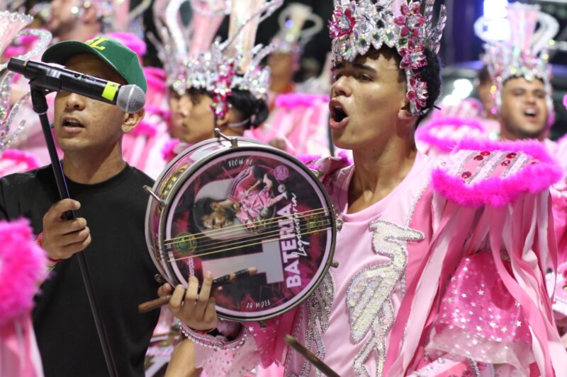 Más tarde, Arandú Beleza copó la calzada con «Agua del Cielo». En su 20° aniversario, la comparsa cautivó con su mística guaranítica y una elegancia que reafirmó su sello distintivo. Antes del gran final, la «Multicampeona» Samba Total hizo que «comience el show», desplegando todo el glamour de su estética revisteril y su fuerza rítmica inconfundible.