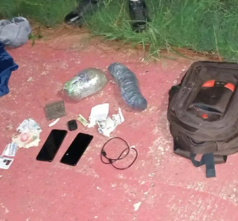 Ante el hecho, notificaron a las autoridades judiciales y secuestraron la mochila, hallando dentro de ella dos paquetes envueltos en nylon conteniendo 947,4 gramos de picadura de marihuana; además de una campera con capucha, sin marcas visibles. También encontraron dos celulares, pero para sorpresa de los efectivos, el sospechoso olvidó su billetera con un poco de dinero en efectivo y todos sus documentos personales que le permitieron a la Policía conocer su identidad.