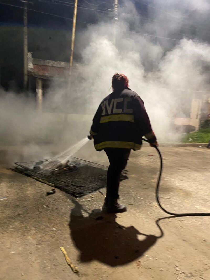 Sin embargo, la guardia no tendría respiro. Poco después, a las 20.20, los bomberos debieron desplazarse hasta la intersección de IV Centenario y Comodoro Rivadavia. Allí, un grupo de maderas y cubiertas ardían en plena calle, generando un humo negro y tóxico que alarmó a los vecinos del barrio. Los voluntarios trabajaron rápidamente para extinguir el foco y evitar que el calor dañara el asfalto o el cableado aéreo.