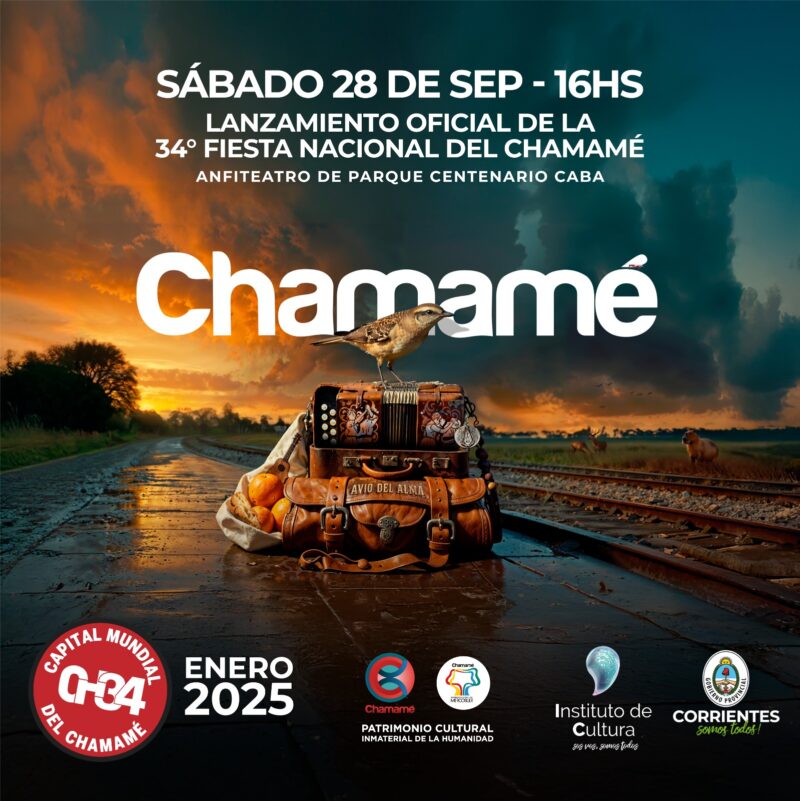 Se trata de la presentación de la 34º Fiesta Nacional del Chamamé, este sábado 28, a las 16, en el escenario del anfiteatro del Parque Centenario de la Ciudad de Buenos Aires, con un festival para invitar al país a la “fiesta grande” de enero en Corrientes.