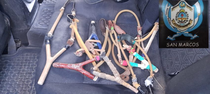 Este hecho que para el grupo de diez jovencitos era una especie de travesura, pudo haber provocado un grave siniestro vial o la lesión de alguna persona. Además, cuando vieron que los policías del Destacamento San Marcos se les acercaban huyeron por una zona de pasillos y arrojaron al menos nueve gomeras que fueron secuestradas junto con varios proyectiles, entre piedras y bolitas de acero.