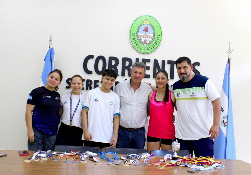 El secretario de deportes de la Provincia, Jorge Terrile recibió en las últimas horas a integrantes del equipo Corrientes Pesas que participó con excelentes resultados en el Campeonato Nacional Absoluto de Levantamiento Olímpico de Pesas en el Centro de Alto Rendimiento Deportivo (Cenard) en la Ciudad Autónoma de Buenos Aires.