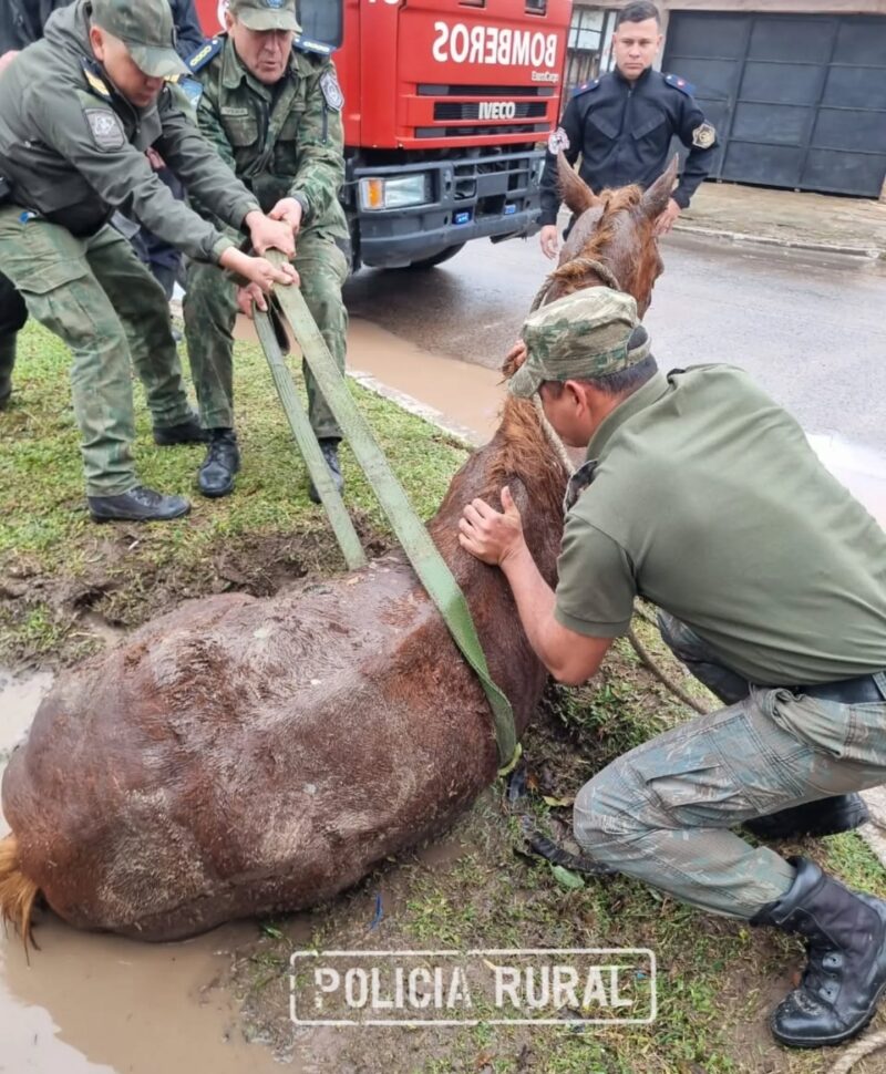 Sin embargo, el destino de este noble animal cambió cuando el Movimiento Argentino de Protección Animal Corrientes (MAPAC), a través de su directora, Isabel Cocomarola, solicitó apoyo a la fuerza del orden. La Policía Rural y Ecológica de Capital respondió de inmediato. Con el apoyo vital de los Bomberos de la Dirección General de la Lucha contra el fuego, los equipos de rescate se enfrentaron a una ardua tarea. Bajo la tormenta, con gran esfuerzo y dedicación, trabajaron incansablemente para lograr que el caballo, sin fuerzas, pudiera levantarse.