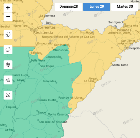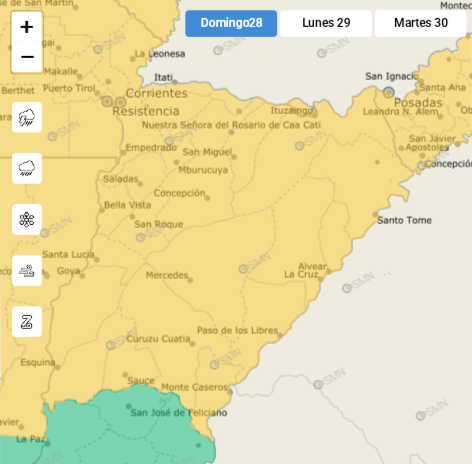 La tregua no llega. El Servicio Meteorológico Nacional (SMN) ratificó este domingo la alerta amarilla por tormentas severas para la totalidad del territorio correntino, extendiendo un panorama que ya es crítico debido a la saturación de los suelos y el colapso de los sistemas de drenaje en Capital y otras localidades tras una semana de castigo hídrico ininterrumpido.
