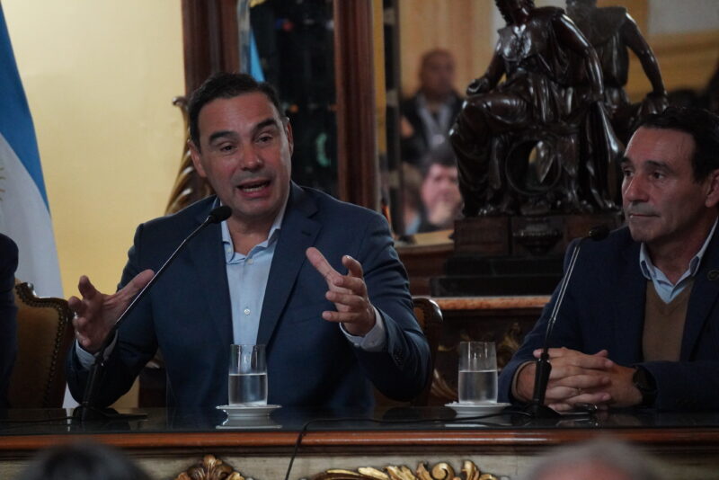 “Largamos este programa porque cuando quisimos conectar cámaras de seguridad en la Capital nos quisieron cobrar 32 millones de euros, para conectar 500 equipos”, recordó el gobernador durante la presentación de los hitos de la empresa TelCo realizado este miércoles en el Salón Amarillo de Casa de Gobierno.