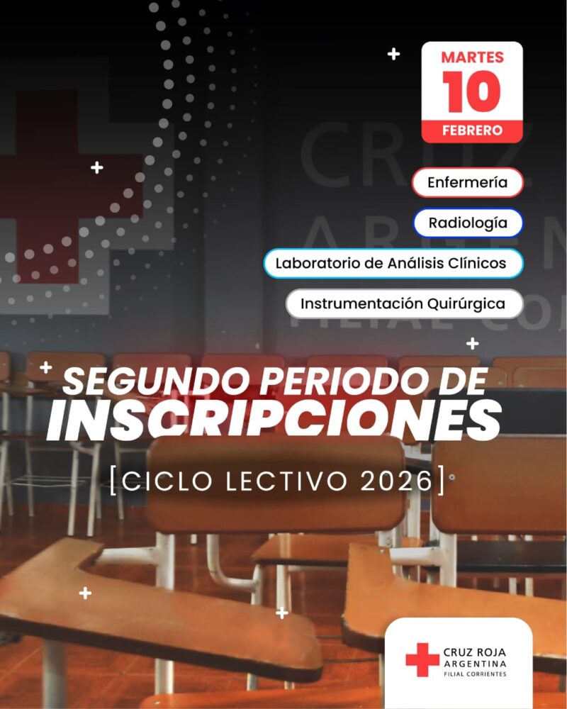 El Instituto de Formación y Capacitación Cruz Roja Argentina Filial Corrientes abrió el segundo período de inscripciones para 2026. El proceso se extenderá hasta mediados de marzo, condicionado a la disponibilidad de cupos en cada carrera.