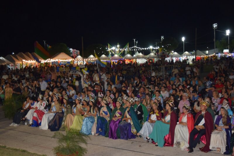 La Fiesta continuó en la jornada de este sábado con el tradicional desfile de las colectividades desde plaza Mitre hasta Costa Surubí, la presencia de delegaciones invitadas de Chaco, Misiones y Santa Fe, y el esperado acto de elección y coronación de la nueva Reina Provincial título que recayó en Mía Kamuh, representante de la colectividad de Países Árabes, que estará acompañada durante todo un año de Luciana Olivetti, representante de la colectividad de Irlanda, como primera Princesa y Berenice Vigliecca representante de la colectividad de Rumania, como segunda Princesa.