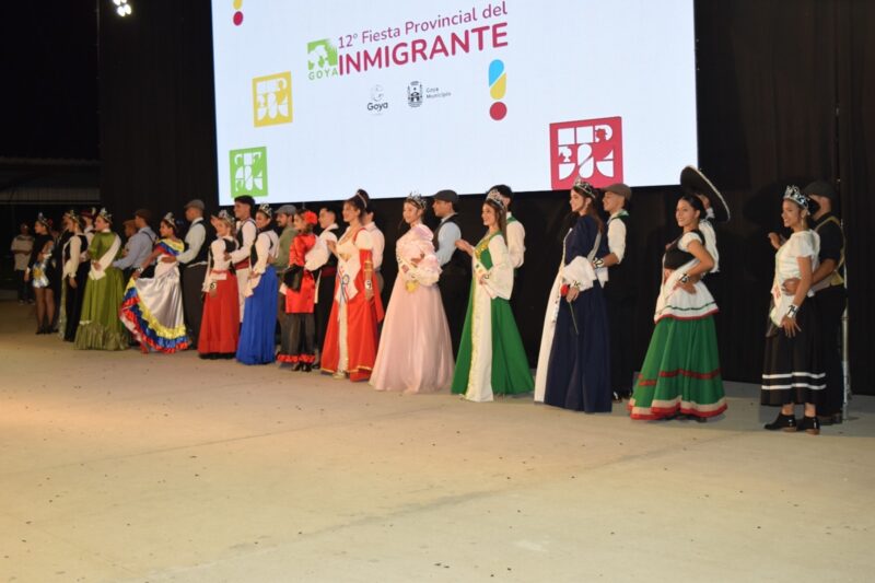 La Fiesta, que fue Declarada de Interés por la Cámara de Senadores de la Provincia, la Vice gobernación y el Concejo Deliberante de Goya, inició su espectáculo con un conmovedor cuadro artístico. El Ballet Oficial, dirigido y coreografiado por la profesora Carolina Salas Araujo, recreó el épico viaje de los inmigrantes. La escena se completó con el emotivo ingreso de las 20 colectividades invitadas, más el país anfitrión, Argentina, desfilando con sus banderas identificatorias. A la cabeza, la Reina saliente, Brisa Buzzelatto, junto a las princesas Paulina Fisher y Rocío García, antes de que la multitud entonara las sagradas estrofas del Himno Nacional Argentino.