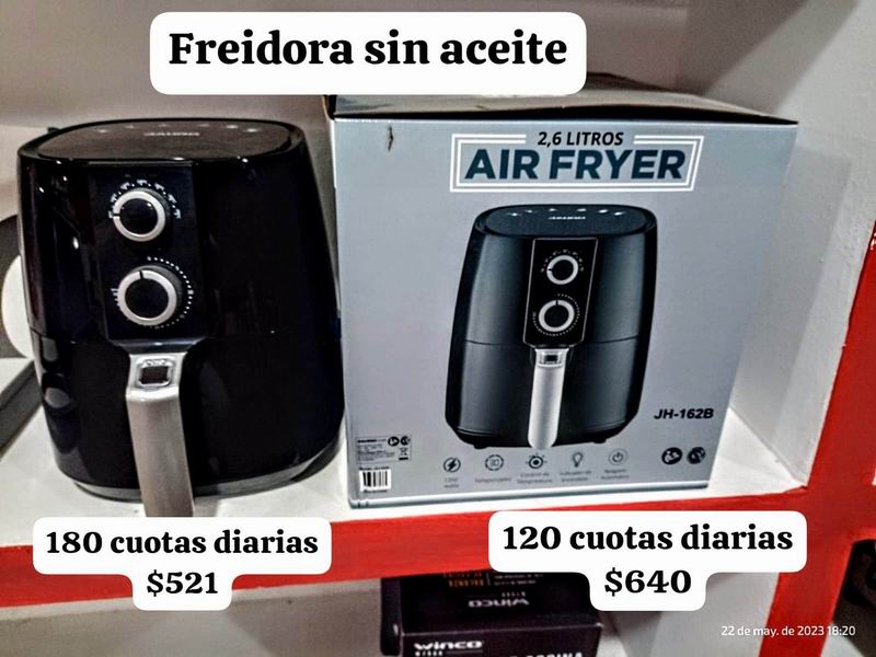 A modo de ejemplo, EL LIBERTADOR indagó en una publicación en la que se ofrecía una freidora de aire, presuntamente nueva, a 180 cuotas diarias de 521 pesos o 120 de 640.