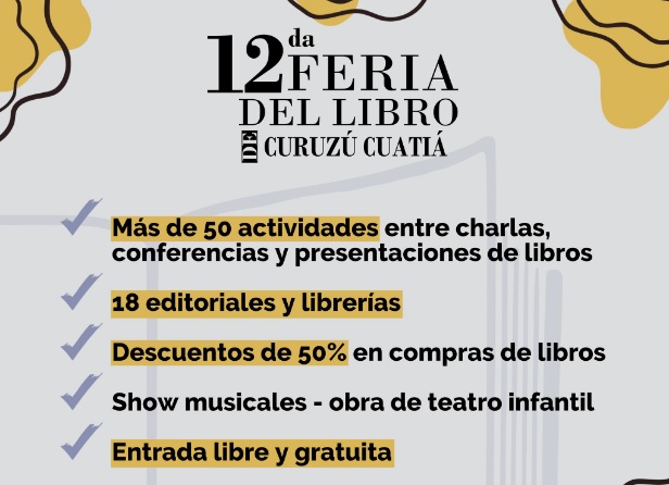 Curuzú Cuatiá se prepara para la 12ª Feria del Libro que se realizaría del viernes 6 al domingo 8 de octubre con la presencia de unas veinte editoriales y librerías que ofrecerán no sólo presentaciones de autores y nuevos títulos sino además, descuentos de entre el 50 y 70 por ciento en sus textos.