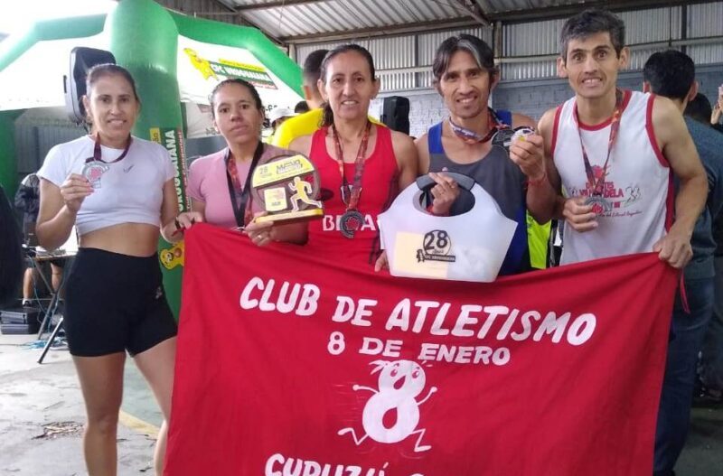 Los atletas curuzucuateños que representan al Club de Atletismo 8 de Enero, dijeron presentes y buenos resultados, la atleta Lorena Alvez logró el primer lugar en la clasificación general damas y José Alegre obtuvo el segundo lugar en la categoría caballeros de 40 a 44 años, ambos participaron sobre una distancia de 4 kilómetros.