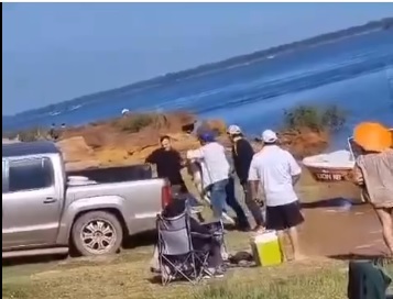 “Esto pasa en los findes largos aprovechan para saquear el río”, dice Luis Martínez, acompañando un video en el que se ve a unas personas sacando un gran ejemplar de surubí de las aguas del Paraná, en Paso de la Patria.