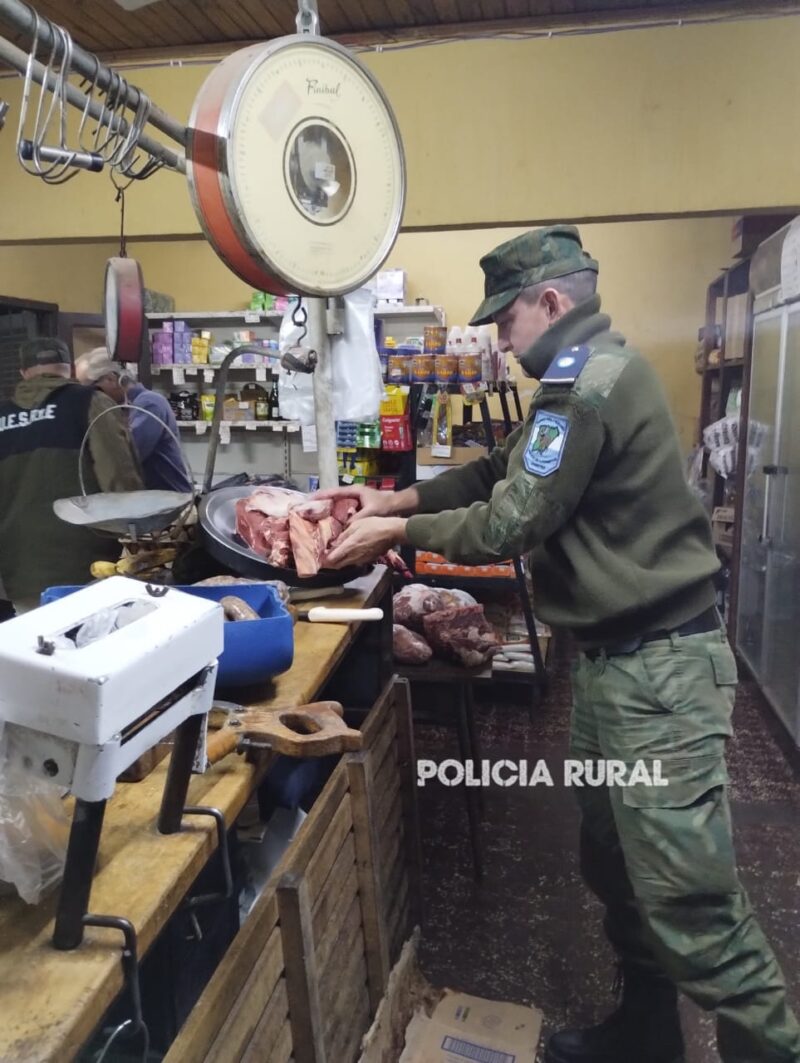 El primer procedimiento se concretó en una conocida carnicería, donde los efectivos secuestraron unos 75 kilos de carne sin sellos ni documentación que acreditara su procedencia.