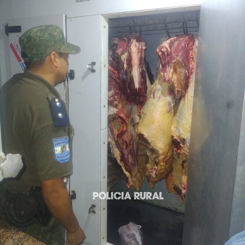 Personal de la Unidad Especial de Seguridad Rural y Ecológica de Lavalle intervino en una vivienda del paraje Cafarreño, donde se hallaron alrededor de 200 kilogramos de carne vacuna faenada sin controles ni documentación sanitaria.