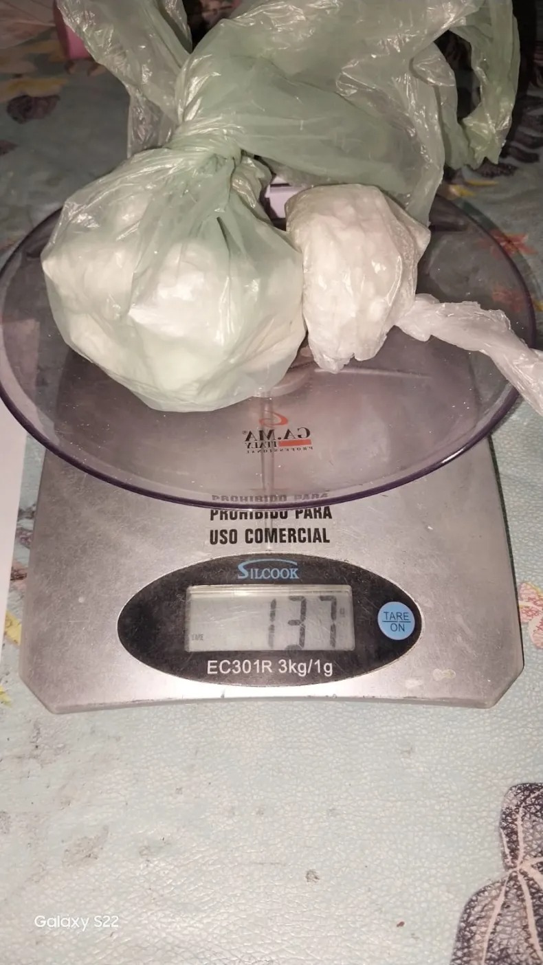 Seguidamente, el segundo operativo fue realizado por los mismos efectivos, en una finca en inmediaciones de calles Francia y Valdezpeña, lugar donde se procedió al secuestro preventivo de 143 envoltorios de polietileno, con sustancia compacta blanquecina y tras realizar el correspondiente test orientativo, arrojó resultado positivo para cocaína, con un peso total de 22,18 gramos, 12 teléfonos celulares, 17 recipientes plásticos, bolsas de polietileno transparente, 2 balanzas, dinero en efectivo, entre otras cosas. En el lugar se procedió a la detención de dos hombres mayores de edad-.