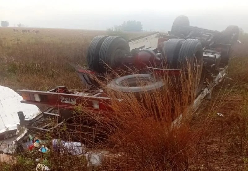 Portada » Despiste y vuelco de un camión en Ruta Nacional 14