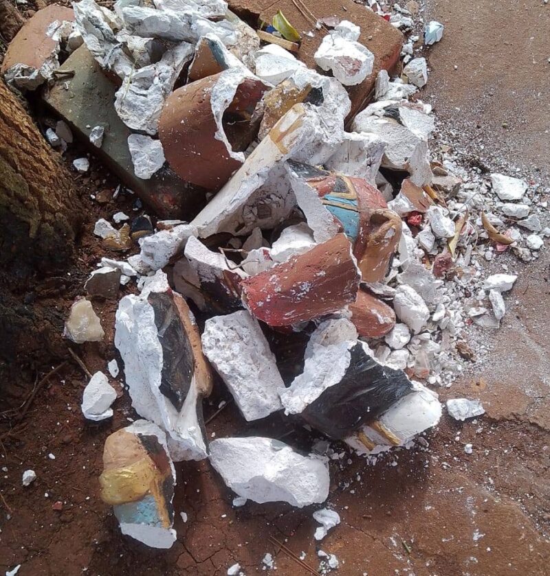 Según se pudo observar, la figura del santo popular apareció rota y con signos evidentes de haber sido atacada intencionalmente. El lugar, que es visitado con frecuencia por personas que se acercan a dejar velas, banderas y ofrendas en señal de fe y agradecimiento, amaneció con la imagen severamente dañada.