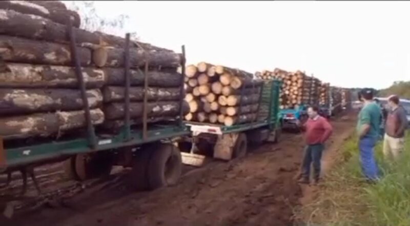 La filmación a la que tuvo acceso este medio muestra el modus operandi de los camioneros circulando con sus vehículos abarrotados en el Departamento Santo Tomé, a unos 17 kilómetros camino a Aguapey.