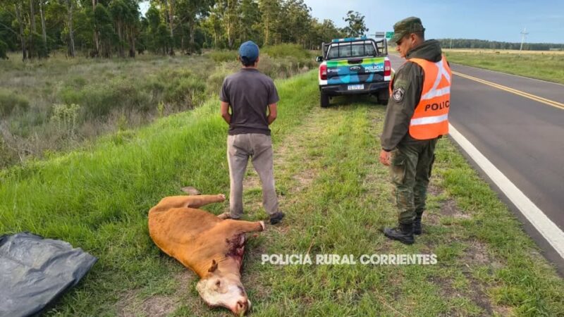 En el vehículo viajaban dos hombres de apellidos D Y R, quiénes estaban faenando un ternero al costado de la ruta, un animal vacuno faenado con marca y señal visible que obviamente no era de ellos.