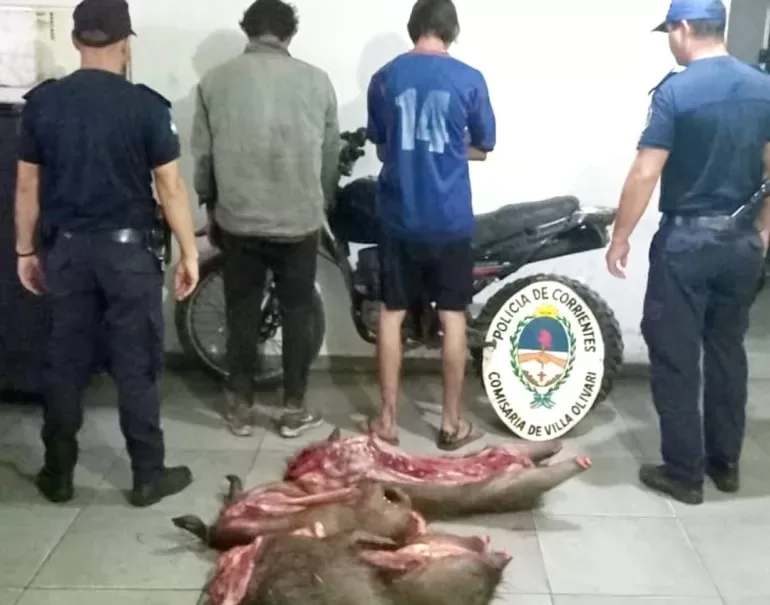 Efectivos de la Comisaría de distrito Villa Olivari, gracias a la labor de prevención desplegada dentro del contexto del «Plan Integral de Seguridad Vial y Prevención del Abigeato, Caza Furtiva y Pesca ilegal», en un procedimiento realizado, en inmediaciones de la reserva provincial Cambyretá, demoraron a seis presuntos cazadores, e incautaron animales faenados, motocicletas, armas de fuego y otras cosas.