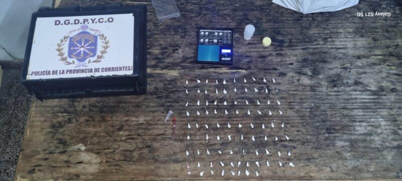 En un operativo de prevención realizado en la jurisdicción de la Comisaría Quinta Urbana, la Policía de Corrientes capturó a un sujeto de 39 años que intentaba deshacerse de un importante cargamento de estupefacientes fraccionados para la venta. El procedimiento, que tuvo lugar alrededor de las 04:15 de este viernes, se inició cuando una patrulla divisó a dos hombres a bordo de una motocicleta Honda Biz en la intersección de las calles Lavalle y Río Juramento.