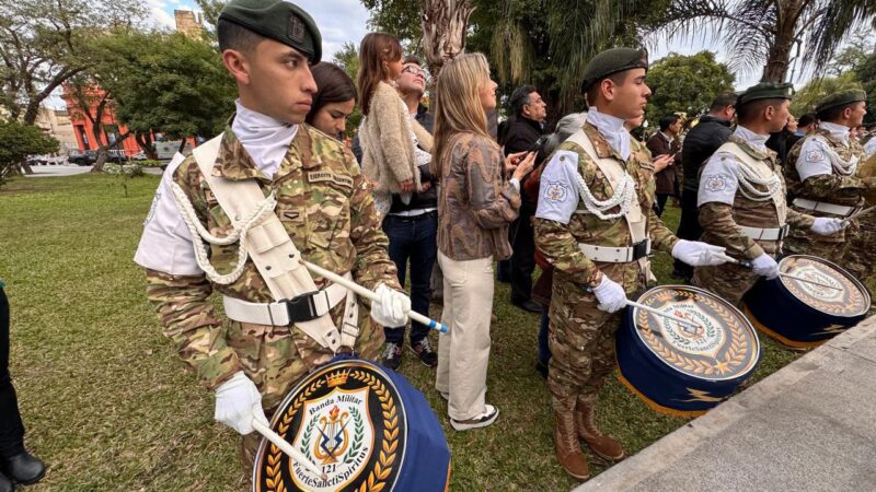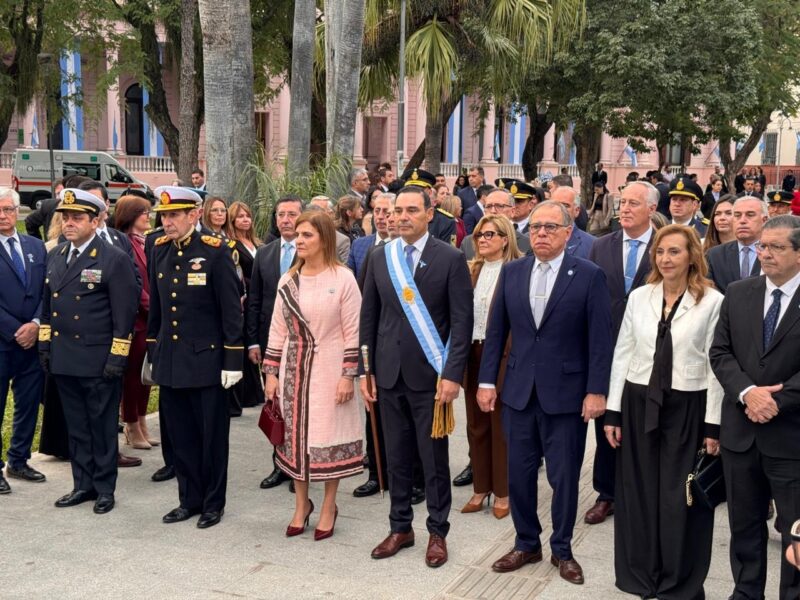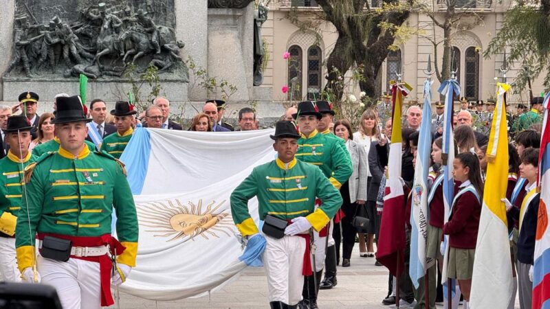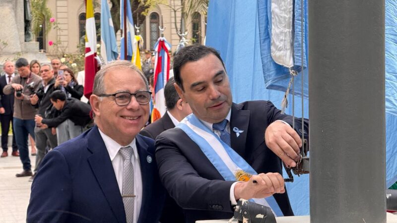 En el arranque de los actos oficiales por el Día de la Independencia argentina, el gobernador y el intendente izaron la bandera nacional en plaza 25 de Mayo.